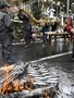 春の祭りや盆踊りなどの諸行事が立ちゆかなくなり、最後に絆をつなぐのが、この「山の講」。神社脇の斜面に大しめ縄を張って行事を終えると、女性たちが焼いたイワシが並んでいた。