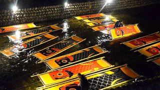 山の安全を願う祭り。男衆が総出でわらをない、半日かけて全長12メートルの竜の形の大しめ縄を作り上げる。角を付け、目を描き、わらで包んだイワシを胴体につり下げた。「魔よけかな。軒下にイワシの頭とヒイラギをつるすとこもあるでな」と氏子総代の小寺明さん(76)。昔は子どもたちが奪い合い、縁起物として持ち帰ったという。