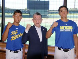 県岐阜商の高木選手と小林選手激励 垂井町長「悔いない試合を」12日甲子園初戦