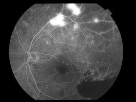 最も問題になるのはVEGFが増えることによって、網膜に新生血管と呼ばれる異常血管が生じることです。新生血管はとてももろい血管で、眼内に大出血を起こしたり、さらに新生血管が増えると網膜の上に膜状に広がって(増殖膜と呼びます)、これが縮むことによって網膜がはがされて網膜剝離を来したりします。そうなると失明の危険が出てきます。また、この新生血管が隅角と呼ばれる眼内の水(房水)の排出路に生じると、眼圧が急激に上昇する血管新生緑内障を生じます。これは最も管理が難しい緑内障で、やはり失明の原因になります。VEGFは網膜の一番大事な部分(黄斑と呼びます)に腫れが起きる黄斑浮腫の原因にもなります。