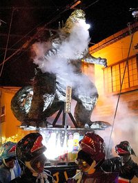 「ゴジラみこし」夜の街にぎやかに練る 飛騨神岡初金毘羅宵祭、岐阜