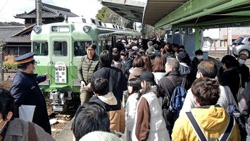 「いもむし見たい」名鉄3400系復刻車両にファン集結、乗車待ち列も 広見線活性化へ期待 ライフスタイル 2024年3月3日 07:58 「いもむし」列車に乗降する大勢の人で埋め尽くされたホーム=御嵩町中、御嵩駅 鉄道ファンに人気を集めた限定の記念鉄道グッズ=同 名鉄広見線(新可児駅-御嵩駅間)... 残り650文字(全文:667文字) この記事をお読みいただくには「デジタルプラン」または「宅配+デジタルプラン」の会員登録が必要です。無料会員の方はログインしてマイページからコース変更してください。デジタルプランまたは宅配+デジタルプランをご登録中の方はログインしてください。 岐阜新聞デジタル会員に登録すると 無料会員向け記事が読める ニュースレターで最新情報が受け取れる デジタルプラン、宅配+デジタルプランなら Webオリジナルコンテンツが読める 紙面ビューアが読める チケットの先行発売に参加できる お得なクーポンが使える 新規登録ページ ログインページ トップ 岐阜のニュース ライフスタイル 「いもむし見たい」名鉄3400系復刻車両にファン集結、乗車待ち列も 広見線活性化へ期待 関連記事 「いもむし」名鉄3400系復活 名鉄広見線、復刻塗装した列車運行開始 広見線犬山―新可児間ワンマン化 ダイヤはどうなる?【みのひだ乗り物探訪 第14回】 「ながら」に揺られて善光寺参り 関善光寺~ぎふローカル鉄道社寺巡り【みのひだ乗り物探訪第13回】 旧国鉄越美南線「キハ48系」柿色車両再現 長良川鉄道が新型車両3月導入「柿弁当」計画 撮り鉄、違法行為も武勇伝に「撮影で邪魔」線路内ロープ切断で逮捕 愛好家怒り「また印象悪くなる」 岐阜県内の商業施設、店舗面積ランキング 2位、開業時は国内最大級…1位はIC近く14年に新棟整備 おすすめ記事 岐阜県内の商業施設、店舗面積ランキング 2位、開業時は国内最大級…1位はIC近く14年に新棟整備 輝くイチョウ並木、冬ロマン 岐阜・各務原「学びの森」でイルミ 「2053年 ○月×日」 AIが28年後予測「空想6万号」 ウィメンズラリー、岐阜・恵那で開幕 林道や急勾配、スリリングな展開予想