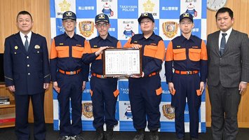 夜間巡回中に道迷った高齢者保護、火災予防啓発で発見 岐阜・高山署、消防団国府支団に感謝状