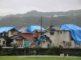 突風被害、片付けに追われる住民 屋根にブルーシート、昨年も被害の岐阜・八百津町