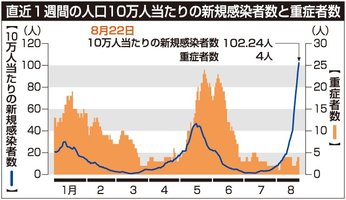 岐阜県医療、予断許さず 人口10万人当たり感染者100人超、重症者遅れて増加