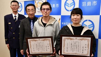 深夜に川で溺れた女性を救助 岐阜・羽島市の夫婦に感謝状