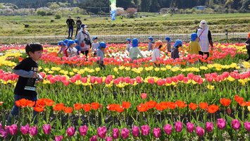 チューリップ3万株、色とりどり 岐阜・池田町の休耕田で見頃