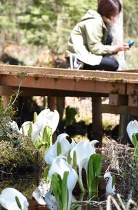 純白のかれんな姿、ミズバショウ見頃 岐阜・高山市の美女高原