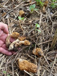 「変な見た目…触ったらいけないキノコかと」アミガサタケ、うちの畑にも! 畑のあぜ道で複数発見