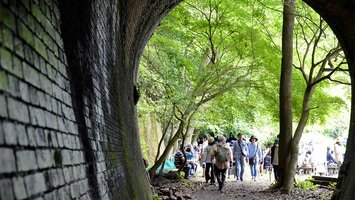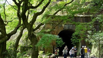 美しすぎる廃トンネル「愛岐トンネル群」春の特別公開 廃線跡散歩、新緑の大モミジをめでる