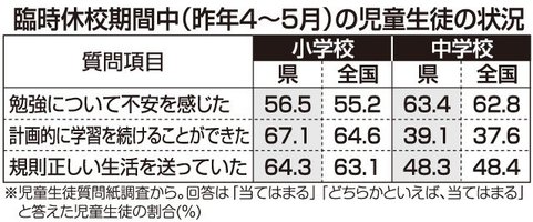 コロナで休校中「勉強に不安」6割 岐阜県内小中生「計画的学習できた」全国平均上回る