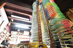 目にも涼しげ「水うちわ」作りが最盛期 岐阜市の伝統工芸品 ライフスタイル 2024年5月11日 07:48 ニスが塗られ、仕上がりを待つ水うちわ=9日午前11時28分、岐阜市湊町、住井冨次郎商店 11日に開幕する長良川鵜飼の土産... 残り357文字(全文:374文字) この記事をお読みいただくには「デジタルプラン」または「宅配+デジタルプラン」の会員登録が必要です。無料会員の方はログインしてマイページからコース変更してください。デジタルプランまたは宅配+デジタルプランをご登録中の方はログインしてください。 岐阜新聞デジタル会員に登録すると 無料会員向け記事が読める ニュースレターで最新情報が受け取れる デジタルプラン、宅配+デジタルプランなら Webオリジナルコンテンツが読める 紙面ビューアが読める チケットの先行発売に参加できる お得なクーポンが使える 新規登録ページ ログインページ トップ 岐阜のニュース ライフスタイル 目にも涼しげ「水うちわ」作りが最盛期 岐阜市の伝統工芸品 関連記事 鮮やかなオレンジ色、今年も甘いよ 岐阜・各務原、特産のにんじん収穫開始 雪が積もった?ヒトツバタゴ群生 岐阜・土岐市の白山神社 赤ちゃんグマ5匹誕生、まさにもふもふの天使…岐阜・奥飛騨クマ牧場で記念撮影を 「透明な花」サンカヨウ、雨にぬれてスケルトン 岐阜・平湯キャンプ場で見頃 ぴよりん揖斐川茶コラボ、道の駅「星のふる里ふじはし」で新作スイーツ限定販売 JR名古屋駅でも 2メートル選手が「家具役」に!? 岐阜スゥープス×岐阜大高木ゼミ、ショート動画で防災訴え おすすめ記事 明知城跡から定説覆す石垣発見 恵那市の調査、本丸と出丸から 17世紀初頭の改修 岐阜県で今週末どこ行こう?【13、14日】 大野町が小中学校の再編案公表 義務教育学校を導入へ 2メートル選手が「家具役」に!? 岐阜スゥープス×岐阜大高木ゼミ、ショート動画で防災訴え