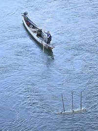 スマホ見せてグルメ・買い物お得に 岐阜新聞デジタルクーポン「かかっとると、ええけどね」。竿を手にした漁師の松野義行さん(75)=岐阜県瑞穂市=は、半世紀近くサツキマスを取ってきた。すだれ状の竹のさなで流れを抑え、流れに沿って下流側に張った刺し網で捕らえるのが伝統漁法「すば網漁」だ。
