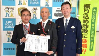 雨中に行方不明の高齢者発見、根気よく会話→自宅へ送り届ける 男性に感謝状、岐阜中署