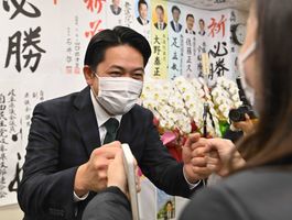 岐阜市長選 現職の柴橋正直氏が再選、投票率は過去最低24.82% 政治・行政 社会 2022年2月6日 22:34 岐阜市長選で再選を確実にしてバンザイ三唱する柴橋正直さん(中央)=6日午後8時3分、岐阜市端詰町、選挙事務所 岐阜市長選で再選を確実にして花束を贈られた柴橋正直氏。右は妻有美さん=6日午後8時10分、岐阜市端詰町、選挙事務所 岐阜市長選で再選を確実にして支持者とグータッチを交わす柴橋正直さん=6日午後8時半、岐阜市端詰町、選挙事務所 任期満了(23日)に伴う岐阜市長... 残り816文字(全文:833文字) この記事をお読みいただくには「デジタルプラン」または「宅配+デジタルプラン」の会員登録が必要です。無料会員の方はログインしてマイページからコース変更してください。デジタルプランまたは宅配+デジタルプランをご登録中の方はログインしてください。 岐阜新聞デジタル会員に登録すると 無料会員向け記事が読める ニュースレターで最新情報が受け取れる デジタルプラン、宅配+デジタルプランなら Webオリジナルコンテンツが読める 紙面ビューアが読める チケットの先行発売に参加できる お得なクーポンが使える 新規登録ページ ログインページ トップ 岐阜のニュース 政治・行政 岐阜市長選 現職の柴橋正直氏が再選、投票率は過去最低24.82% 関連記事 柴橋氏、圧倒的な支持集める 岐阜市長選出口調査 おこめ券配布「コスト上乗せで使途限定、消極的」 岐阜・羽島市、商品券など検討 おすすめ記事 岐阜県警OBが売春場所提供疑い、スカウト集団「アクセス」事件で浮上 岐阜地検が起訴 100歳まで生きたい? 「健康と長寿」岐阜新聞ウェブアンケート 選挙前に菓子配布問題「違反してない」鍔本・本巣市議、議会で弁明 同僚議員からは賛否 岐阜市長選、大須賀氏出馬意向 選挙戦の見通し