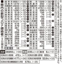 【9日・新型コロナ詳報】岐阜940人感染 高齢者への拡大懸念