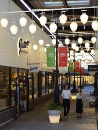 土岐アウトレットに日本の夏「岐阜提灯」100個設置 アーケード区間に夏祭りムード