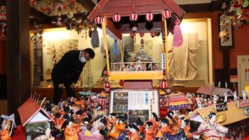ひな人形が「郡上おどり」「アウトドア」満喫 岐阜・郡上「福よせ雛」展示