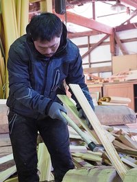 声をかけられたのが高山市出身で宮大工として修業を積んだ川上舟晴(しゅうせい)さん(39)。仲間たちと榑へぎの勉強会を作り、休日を費やして松山さんから技術を学び、練習に励んだ。苦労の甲斐(かい)あって、その後数人の大工が榑板を作れるようになり、葺き替え工事も担えるように。「川上さんたちの努力は目立たないが、もっと多くの人に知ってほしいこと」と松山さんは言う。