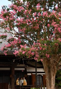 夏空に映えるピンク色、サルスベリ満開 岐阜市の真性寺