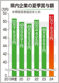 夏季賞与、岐阜県内企業平均51万7933円 98年以降最高、8業種で前年上回る