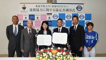 女子野球支援へ東海学院大と東海NEXUSが連携 選手育成やセカンドキャリア支援、共同チーム設立も スポーツ 2024年11月3日 08:41 協定書を取り交わした神谷眞弓子学長(左から3人目)と碇穂球団代表(同4人目)ら=各務原市那加桐野町、東海学院大 東海学院大(岐阜県各務原市)と女... 残り552文字(全文:569文字) この記事をお読みいただくには「デジタルプラン」または「宅配+デジタルプラン」の会員登録が必要です。無料会員の方はログインしてマイページからコース変更してください。デジタルプランまたは宅配+デジタルプランをご登録中の方はログインしてください。 岐阜新聞デジタル会員に登録すると 無料会員向け記事が読める ニュースレターで最新情報が受け取れる デジタルプラン、宅配+デジタルプランなら Webオリジナルコンテンツが読める 紙面ビューアが読める チケットの先行発売に参加できる お得なクーポンが使える 新規登録ページ ログインページ トップ 岐阜のニュース スポーツ 女子野球支援へ東海学院大と東海NEXUSが連携 選手育成やセカンドキャリア支援、共同チーム設立も 関連記事 SNS通じ40万円詐欺被害 岐阜・各務原市の40代女性 各務原市のグループホーム、給付金を不正受給 岐阜県が事業所指定取り消し処分 コンビニ店詐欺防ぐ 各務原署 山﨑オーナーに感謝状 IT活用した中小支援学ぶ 各務原商議所が研修会 岐阜県内、待機児童は2市に 10月1日時点、昨年より増加 潜在的待機児童も 市議会一般質問 要検討項目年2回検査 各務原市がPFAS対策 おすすめ記事 岐阜市の伝統校は商業教育も部活も全国トップ級! 生徒自ら会社経営も 「自走と伴走」で未来のリーダー育成 【ぎふ高校研究】 岐阜県内の観光消費額、過去最高を更新 2024年、4千億円超す 大垣の名所「カリヨン時計」15年ぶり復活 弘光舎本社ビルのからくり時計 2体の人形に歓声 岐阜市と「マーサ21」運営のカワボウが連携協定 子育て、健康、防災など幅広い分野