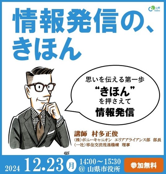 事務局代表である株式会社ポニーキャニオン村多正俊エリアアライアンス部長による、情報発信において必要なポイントを伝授する無料の講座。山県市在住、もしくは山県市内に事業所のある従業員の方であれば誰でも参加可能。こちらも市の公式noteから応募を受け付けている。