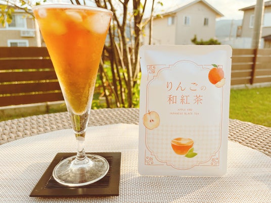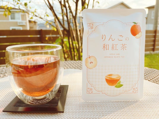 りんごの和紅茶ふわりと「りんご」の香りが広がる紅茶です。和紅茶を使用しているのでスッキリとした飲みやすさもありながら、やさしい甘さも感じるように仕上げています。このままでも十分美味しいですが、りんごのスライスやドライりんごを数個添えてアレンジするのもおすすめです。