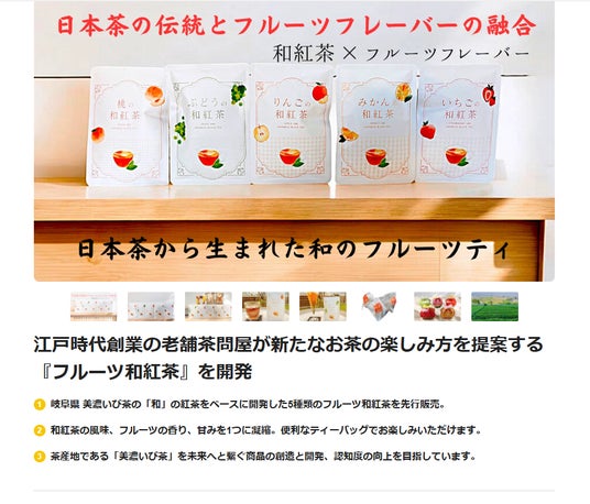 株式会社白井製茶(本社:岐阜県不破郡垂井町 代表:白井 一、以下、白井製茶)は、和紅茶とフレーバーを融合させた「フルーツ和紅茶5種類」をクラウドファンディング大手Makuakeにて先行販売を開始します