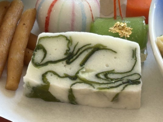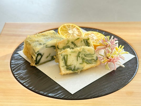 若布の旨味がしっかりと凝縮されており、カットすると断面が若布の緑色が映える美しい仕上がりになります。前菜(八寸)や揚げ物、蒸し物、煮物など多彩な料理シーンで活躍し、年中を通して使いやすい商品です。解凍後はそのまま使用可能なため、調理の手間を省きながらも料理に自然な風味と食感を加えることができます。