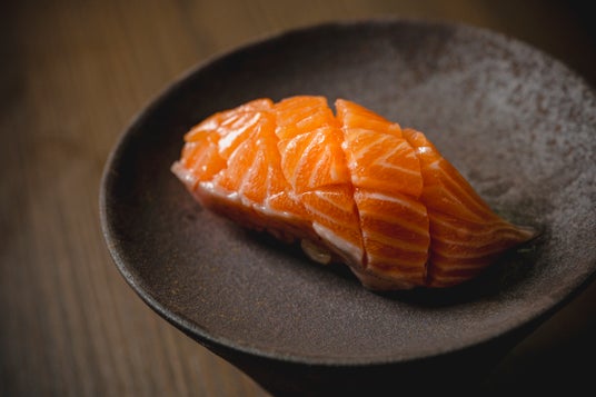 マンゴーカットサーモン寿司550円通常のネタの1.5~2倍ほどの大きくカットしたサーモンをマンゴーカットにしました。