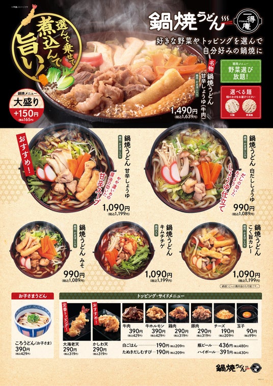 スガキコシステムズ株式会社(本社:愛知県名古屋市、代表取締役社長:菅木伸一)は、イオンモール各務原インター内に新業態の「鍋焼うどん 一得庵」をオープンします。