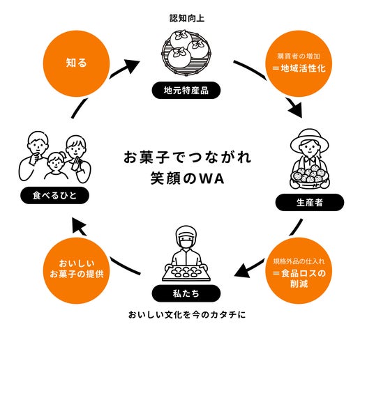 「蜂屋柿」の認知度向上、地元農家の活性化、そして私たちも新たな柿スイーツを開発することができます。循環型のみんなにやさしい商品開発を目指しています。