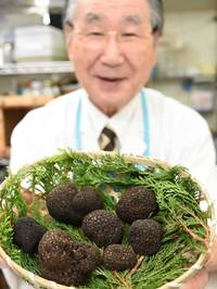 世界三大珍味の一つに数えられ、「キッチンのダイヤモンド」とも呼ばれる黒トリュフが、高山市内の山で見つかった。入手した同市本町の本陣平野屋花兆庵の元料理長で相談役の藤原司盛(きせい)さん(72)は「この旅館に22年勤めているが、飛騨でトリュフが採れたなんて初めて聞いた」と驚く。...