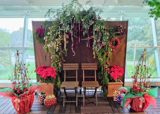 花と緑について学ぶ専修学校である岐阜県立国際園芸アカデミーは今年で開学 20周年を迎えました。20周年記念事業の一環として、学生2名がクリスマスのディスプレイをデザインし、製作します。