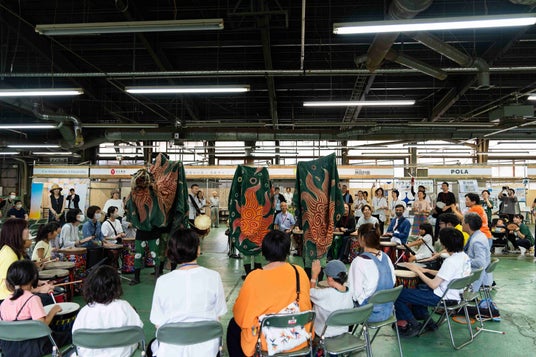 飛騨ではなかなか開催することのできない若手のプロミュージシャンによるライブを開催し、地元の方々にこちらは多く来場していただきました。また、飛騨を中心に活動している和太鼓演奏、お祭りの際に出る獅子舞が音楽に合わせて会場を盛り上げました。さらにYAMAHAと和太鼓、獅子舞チームがコラボレーションし、さまざまな打楽器を参加者参加型でリズムを共奏するワークショップを行いました。老若男女が年齢や居住エリアを越えて一つになり、言葉を超えた一体感を表現する機会となりました。