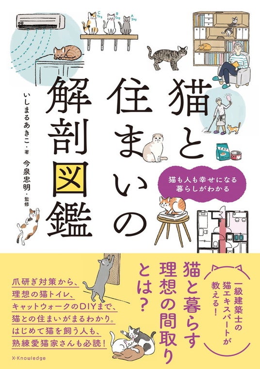 『猫と住まいの解剖図鑑』(エクスナレッジ)建築士と猫シッターの2つの視点で猫との住まいの困りごと解決を目指した本。猫の習性や行動をふまえ、猫も人も無理をしない、安全で安心な猫との住まいを学べる。2020年3月発刊、現在4刷のロングセラー。