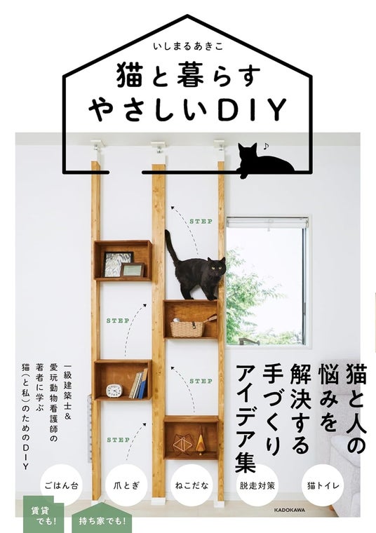 『猫と暮らすやさしいDIY』(KADOKAWA)賃貸でも、持ち家でも取り組める、猫との住まいのためのDIY初心者向け猫DIY本。2024年7月発刊。
