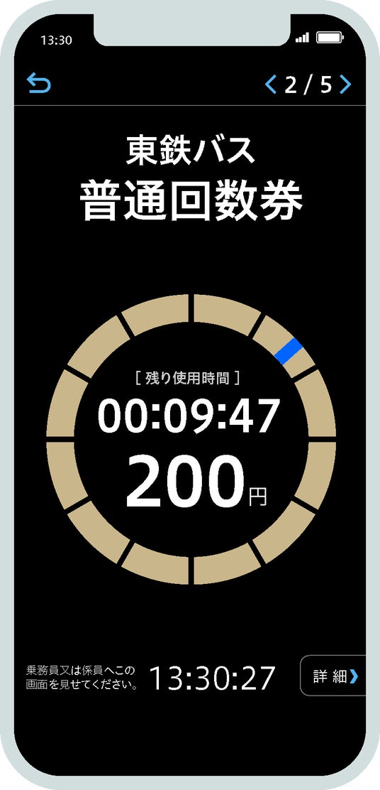 1. 降車時にモバイルチケットをスマホ画面に表示し、乗務員に呈示
