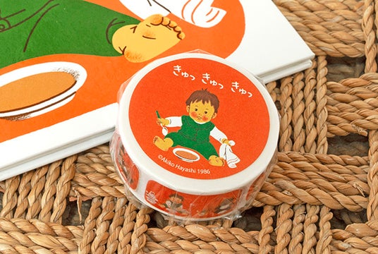 テープを伸ばすと『きゅっきゅっきゅっ』の全場面がストーリーに沿って現れる贅沢な仕様。この絵本の特徴でもある各絵柄の柔らかい丸みを生かし、林明子さんの描く子どもの可愛い仕草からどうぶつたちのあどけない表情まですべてを再現した、たまらなくキュンとするマスキングテープが出来上がりました。