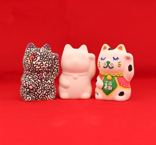 お好きな色で絵付けするので、世界にひとつだけの自分の招き猫が作れます。冬の思い出に。