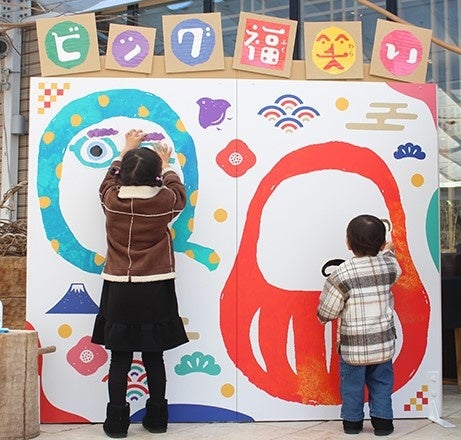 おせち販売/だんご&たい焼き販売/初夢くじスタンプラリー/ビッグ福笑い/各種ワークショップ