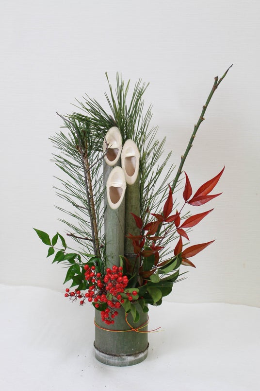 一年中落葉しない松、成長が早く生命力の強い竹、「難を転ずる」という南天の3つの縁起物を用いてオリジナルの門松づくりを体験いただけます。NPO恵那山みどりの会にご協力いただきます。