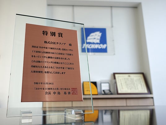 株式会社テクノア(本社:岐阜県岐阜市、代表取締役:山崎 耕治 以下、テクノア)は、このたび、令和6年度「おかやまIT経営力大賞」において、ベンダーの部「特別賞」を受賞いたしました。