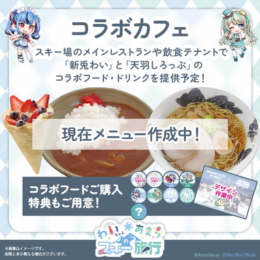 スキー場のメインレストランや飲食テナントで「新兎わい」と「天羽しろっぷ」のコラボフード・ドリンクを提供。