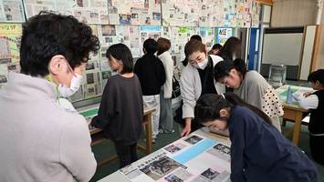 「山県学園構想」で公開授業、桜尾小・梅原小・大桑小が合同学習 新聞切り抜きで他校児童と意見交換