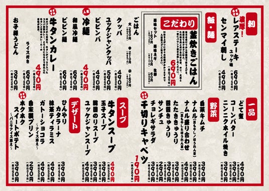 - こだわりの焼肉メニューと充実のサイドメニュー