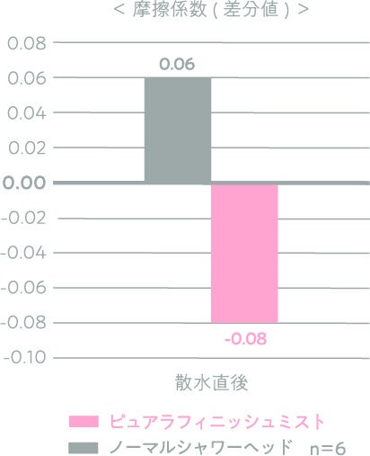 ※4:室温・湿度を一定の環境下にし、水温40℃±1℃にて散水部(頬)より同等の距離から10秒散水。各被験者の散水前(摩擦係数)の値を0とした、散水直後