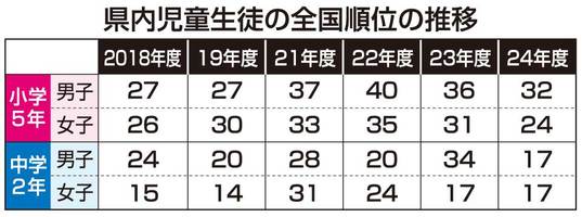 スポーツ庁が20日に公表した2024年度の全国体力・運動能力、運動習慣等調査(全国体力テスト)では、岐阜県の小学5年と中学2年で昨年に続いて改善傾向が見られた。一方、新型コロナウイルス感染拡大前の水準には依然戻っていない。...