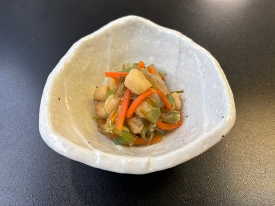 ■貝柱彩り土佐酢和えイタヤ貝の貝柱と彩りの良い具材を土佐酢で和えたさっぱり食べられる商品です。調味液にトロミを付けており、ロス無く使いきっていただけます。懐石料理や居酒屋の1品などで、通年ご使用いただけます。